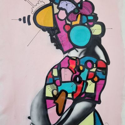 A month later I was involved with a car accident going away for a mind refresh out of Cape Town, and the next day after this situation I was back in the studio, lost in wonder and thoughts and I decided to take acrylic paints and I started playing but due to my emotions I lost it and started to throw paint around, scrubbing, and all that, and which of course a different approach from my signature style of work. This series allowed me to explore and more importantly to paint how, what I feel and dwell more in a self-healing stage which a world needs right now.